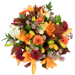 A beautiful arrangement with vibrant colors and fresh flowers. The same-day delivery was very convenient.